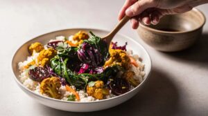 Wat Eten We Vandaag: Bloemkoolrijstbowl met rodekool en spinazie