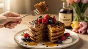 De zoete, volle smaak van een klassieke pannenkoek met stroop vraagt om iets dat het niet overneemt, maar zachte contrasten biedt.