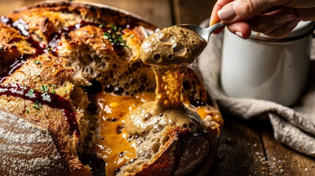 Als de starter eenmaal stabiel is — meestal na een week — kunt u hem geleidelijk omvormen naar een tarwebasis, als u dat wilt. Dit doet u door bij elke voeding een groter aandeel tarwebloem of tarwevolkorenmeel te gebruiken en het roggeaandeel te verkleinen. Na vijf tot zeven voedingen overheerst het tarweprofiel, maar de microbiologische diversiteit die u met rogge heeft opgebouwd, blijft grotendeels bewaard. De starter behoudt zijn karakter: levendig, complex en betrouwbaar.